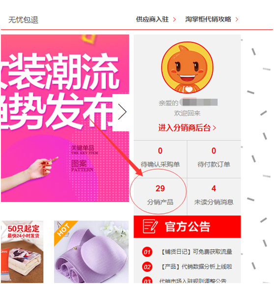 第一步:申请成为代销后,输入1688代销系统网址 -->> https://daixiao.1688.com/