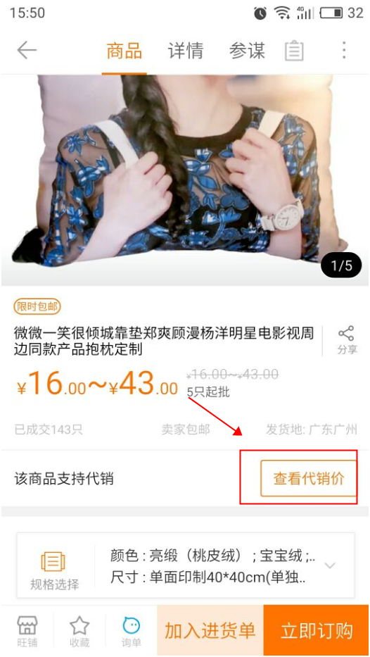第三步:选好尺寸,或者随便选个尺寸都可以,确认代销下单